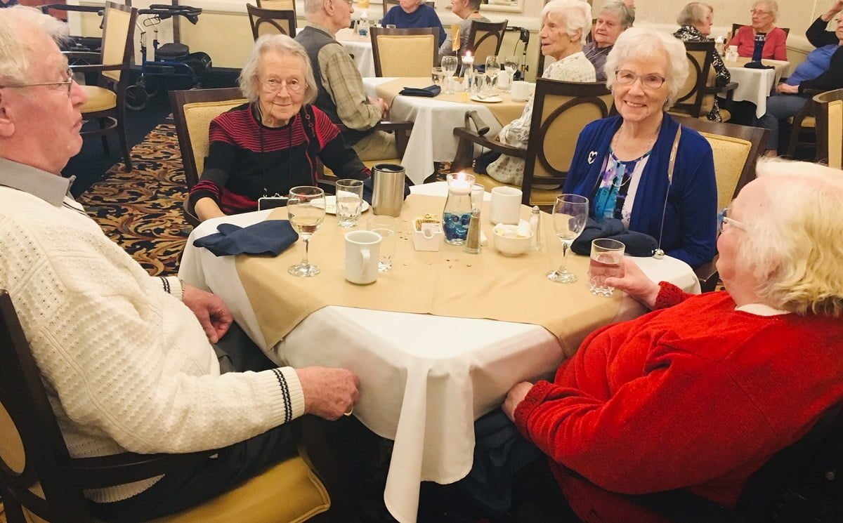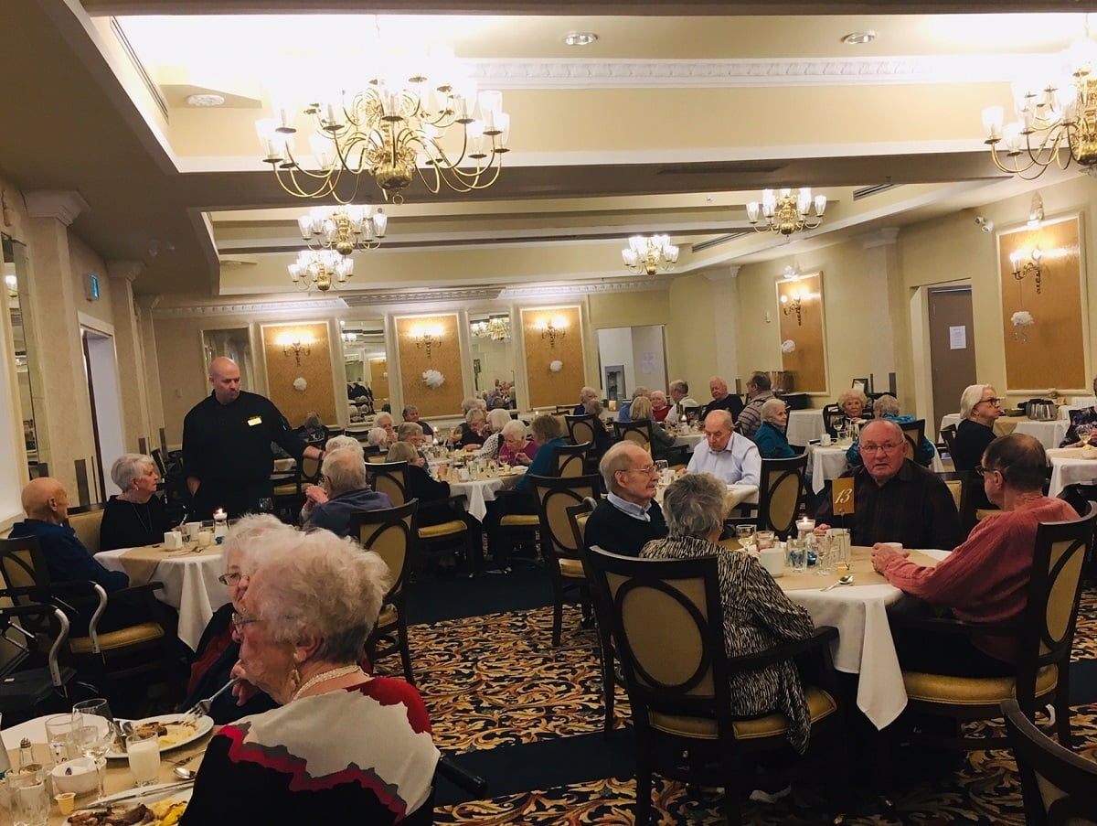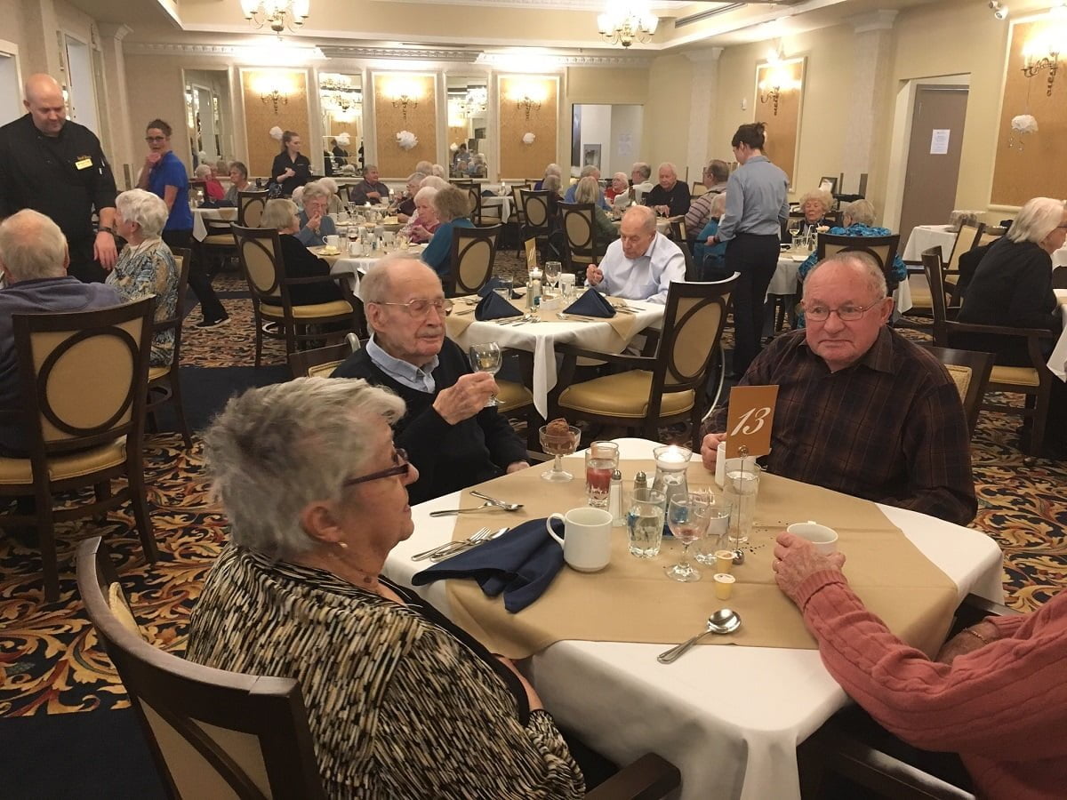 This months Fine Dining Theme was “Winter Wonderland” … but the residents decided that it should be “Farewell to Winter” in hopes that our wishful thinking will help the snow melt and bring some warmer temperatures! We enjoyed a candle lit meal prepared by our head chef Nigel and his fellow chefs Mike and Eric. Their incredible attention to detail always makes our dining experience like no other. Murray Haines and Friends provided some fun entertainment afterwards.