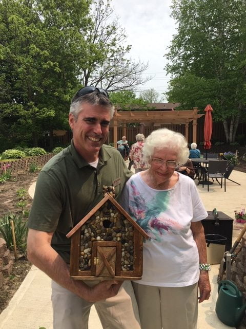 Every Year our garden gets bigger and more beautiful! We’ve added more vegetables, and flowers this year and we’ve added the raised beds for the residents who aren’t able to bend as easily as others. Scott, our Maintenance Manager, recently teamed up with some of our very talented, and artistic residents to complete birdhouses for our beautiful garden.