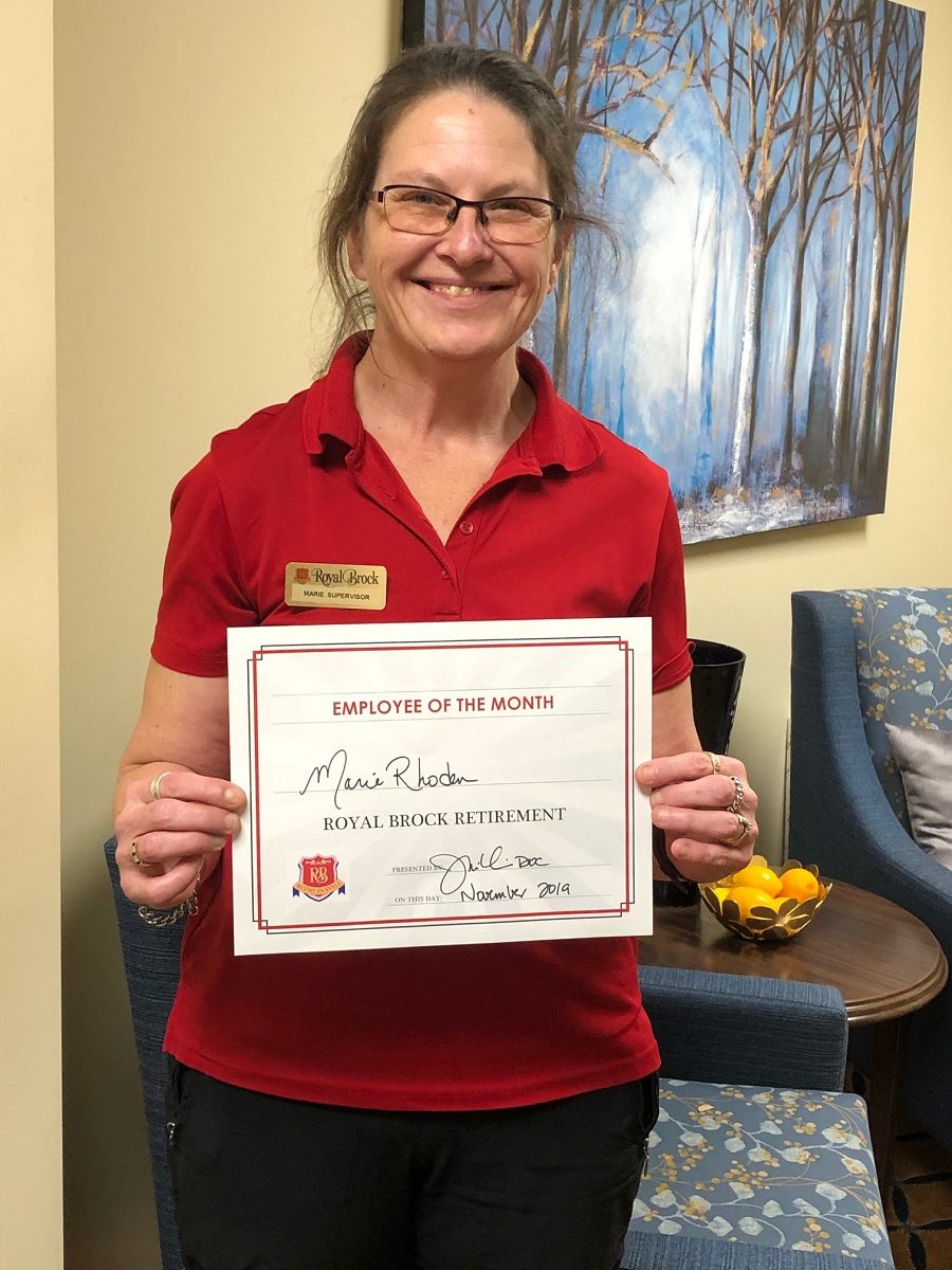 Marie has now been our Employee of the Month twice. She is our Housekeeping Team Lead. Marie joined the team in January of 2017. She said she really loves helping the residents out in any way she can.