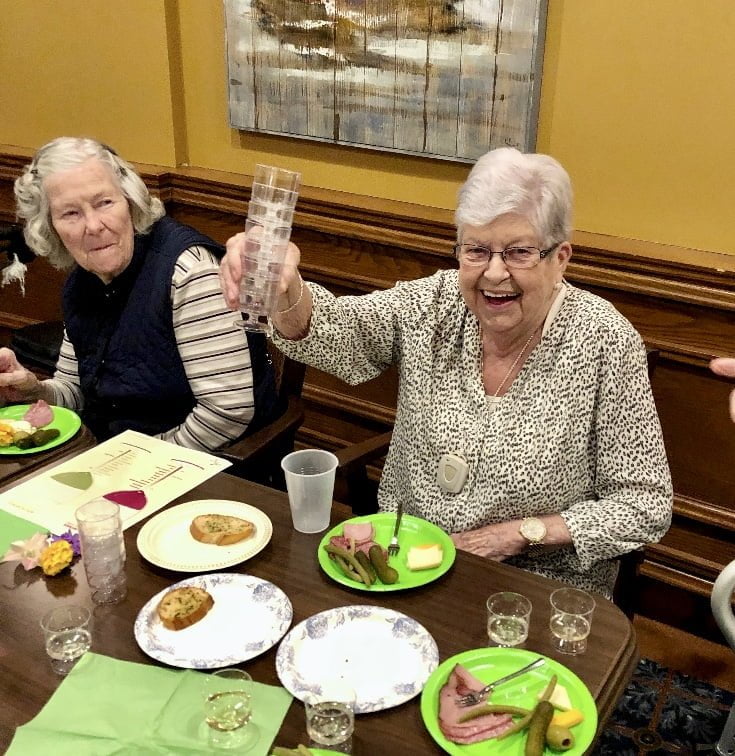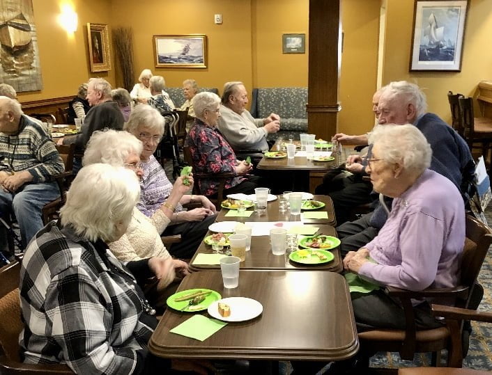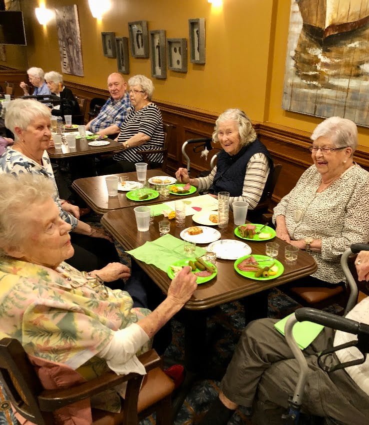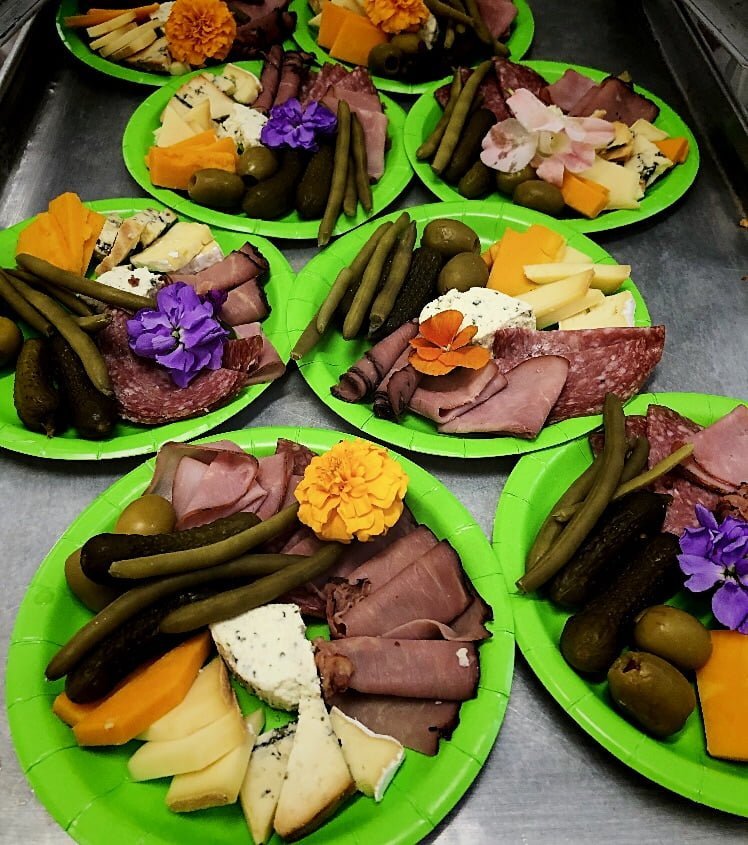 Let’s face it. These are scary times. But our staff really came together to support our residents. Management was in, and our incredible Activity Co ordinator went above and beyond, as usual. She had planned a wine and cheese event but amid new precautions, had to switch things up a bit. Charcuterie boards were no longer an option. So she and the chef got to work preparing 45 individual paper-plate platters of fine meats and cheeses.
