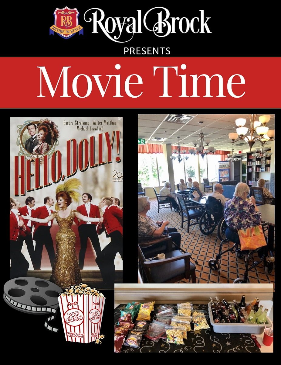 Activities at Royal Brock Retirement have always been at the heart of our close-knit atmosphere. Despite the pandemic, and current restrictions in place, we are trying to make things as normal as possible. Today, rather than having a movie in our theatre, we set up the library so as to allow physical distancing. The movie was Hello Dolly and it was enjoyed by all! We do have plans for some outdoor concerts and will definitely be taking advantage of the incredible weather we have been having!