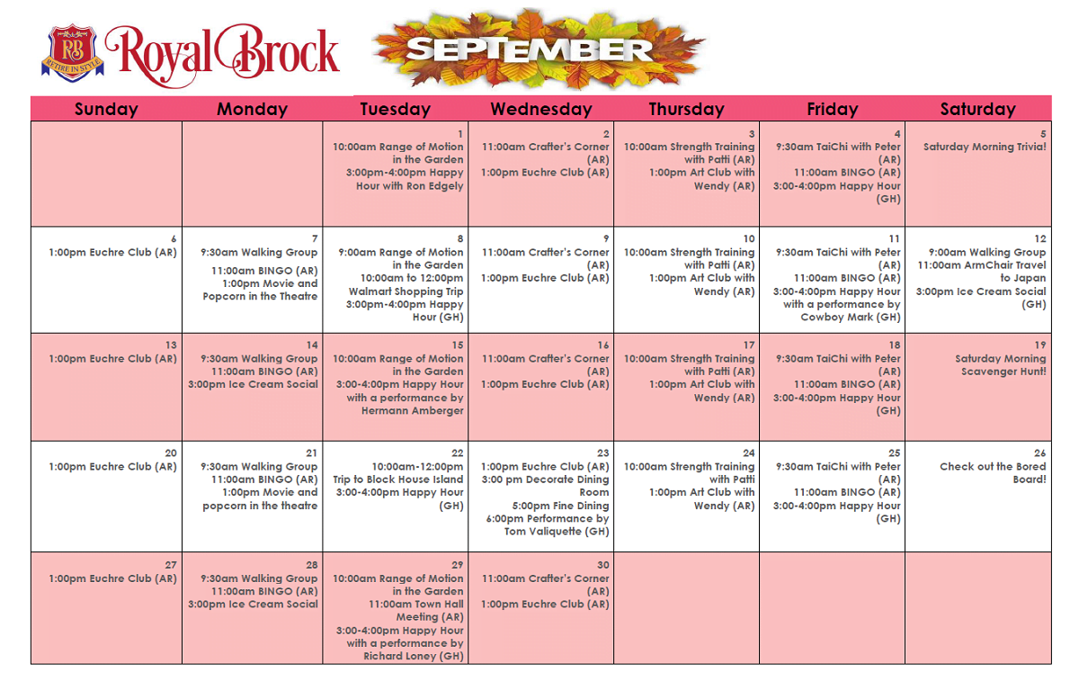 Royal Brock Retirement Living is an active and vibrant community in Brockville. We are proud of our activities, our commitment to senior living wellness initiatives, and our wonderful staff. Retirement residence living is engaging and fun. Scroll down for your monthly activity sheet, staff bios and other news we just have to share.