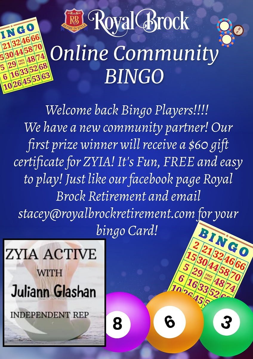 Our online BINGO is back and better than ever!!! We’re going to kick things off with a new community partner, local ZYIA rep Juliann Glashan. Our first game will be one line in any direction, or 4 corners and the first winner will win a $60 gift certificate to ZYIA! We will still accept 3 winners, 2nd and 3rd prize will receive a $10 Tim Hortons gift card! To play, just like our facebook page and I will send you your card by email. You can print it, copy it, or screen shot it on your tablet or phone and use the mark up feature to play. If you win, I will verify your assigned card and send your prize in the mail. Let have some fun and #supportlocal! Good Luck Everyone!