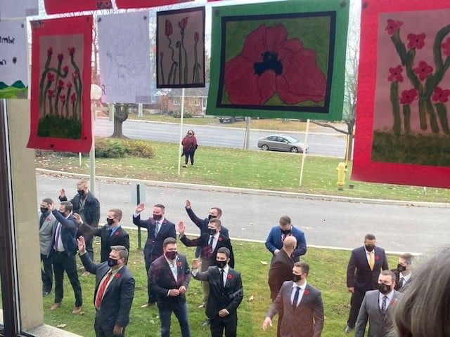 Today we honored our Veterans. The Brockville Rifles attended our ceremony. They stood outside, in solidarity to salute our very own heroes.