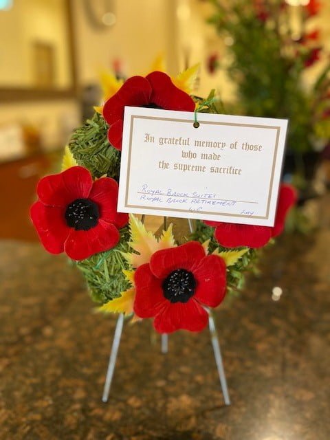 CTV News and The Recorder and Times captured this moment today. We want to thank Bryanna Normandeau, for helping to once again make this a reality for our residents, and a huge thank you to The Brockville Rifles for attending. Jess and Rachel put together a beautiful ceremony for both The Royal Suites, and Royal Brock Retirement.