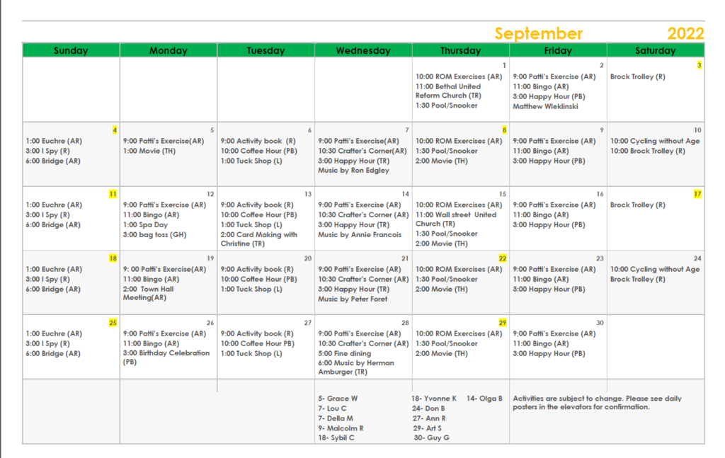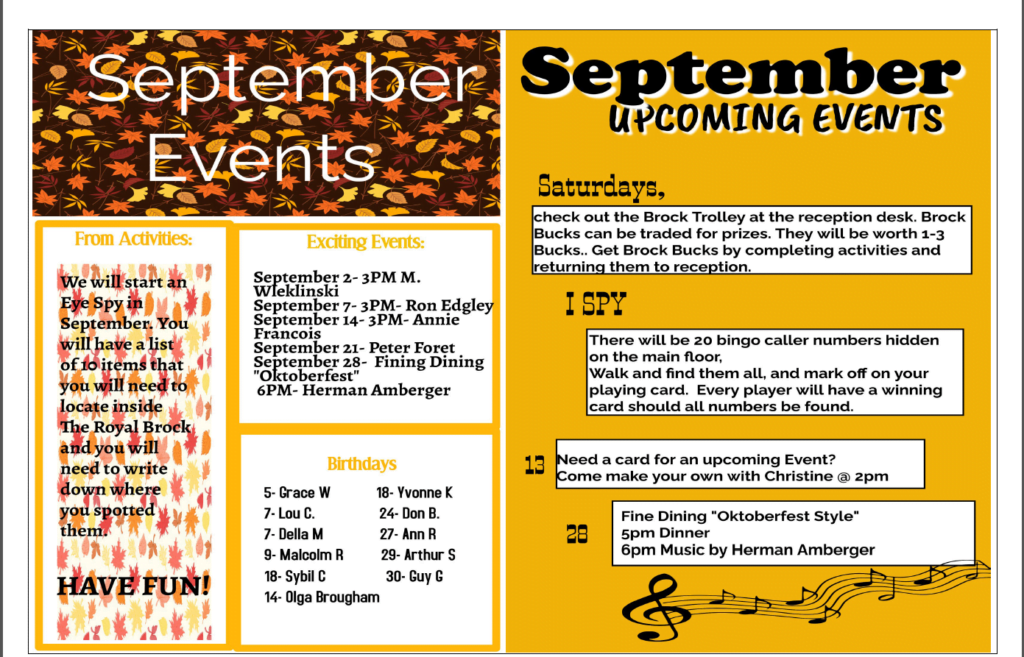 Royal Brock Retirement Living is an active and vibrant community in Brockville. We are proud of our activities, our commitment to senior living wellness initiatives, and our wonderful staff. Retirement residence living is engaging and fun. Scroll down for your monthly activity sheet, staff bios and other news we just have to share.