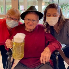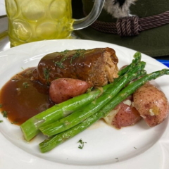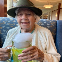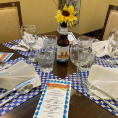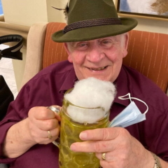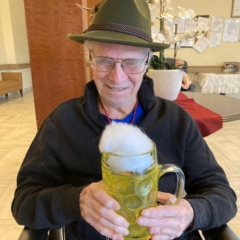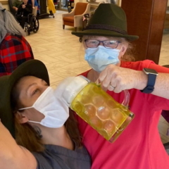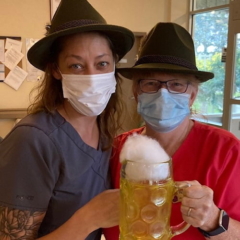 O’zapft is! (It’s tapped!) Our dining room was transformed into a Bavarian beer garden this month when we turned fine dining into fun dining. Festivities kicked off with an afternoon game of beer pong, bringing Royal Brock residents together to celebrate the spirit of Oktoberfest. The Culinary team served Guten appetit (Enjoy your meal) beginning with a German charcuterie plate of German salami, cheese, gherkins and a homemade bread. Köstlich (delicious) Beef Roulade, stuffed with bacon, onions, dijon mustard, garnished with fresh dill or Chicken Schnitzel and gravy were served with traditional boiled red potatoes and grilled asparagus. Zigge, zagge, zigge, zagge, hoi, hoi, hoi! (A toast, a toast, to a warm, cozy place, hey, hey hey!) while we were entertained by Don McDougall. FROHE OKTOBERFEST!” ( Happy Oktoberfest)