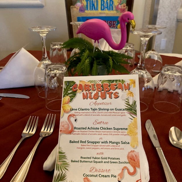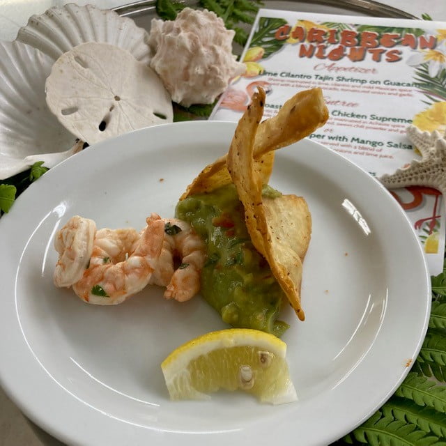 The journey began with our appetizer, Lime Cilantro Tajin Shrimp served with house made guacamole. Each bite took us on a culinary voyage, shrimp marinated in lime, cilantro, Mexican spices and the guacamole danced harmoniously, creating a symphony of flavors. For the main course, a choice of Roasted Achiote Chicken Supreme or Baked Red Snapper with Mango Salsa. Both dishes captured the heart of Caribbean cuisine, offering rich aromas and tender textures that transported us to an exotic culinary paradise. But the journey didn’t end there. The Coconut Cream Pie stole the show as the perfect dessert, embodying the sweetness and warmth of the Caribbean spirit. A huge shoutout to our incredible Culinary and Dietary team for their hard work and creativity. We are always grateful for their dedication to making our dining experiences so special.