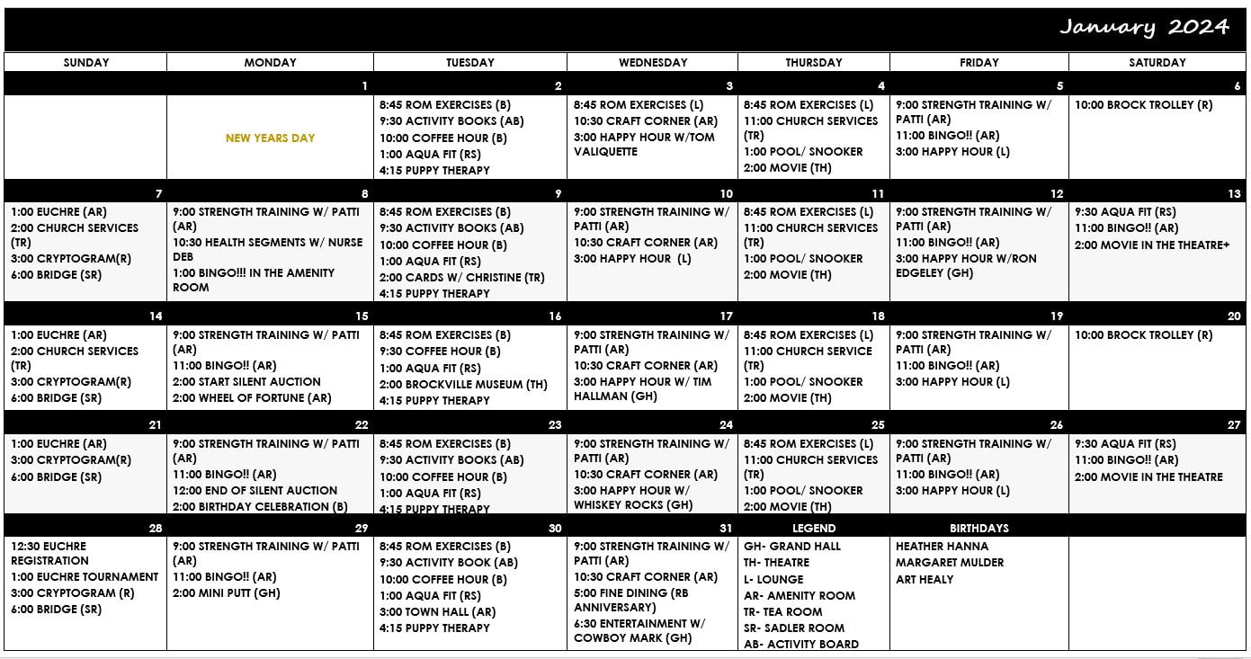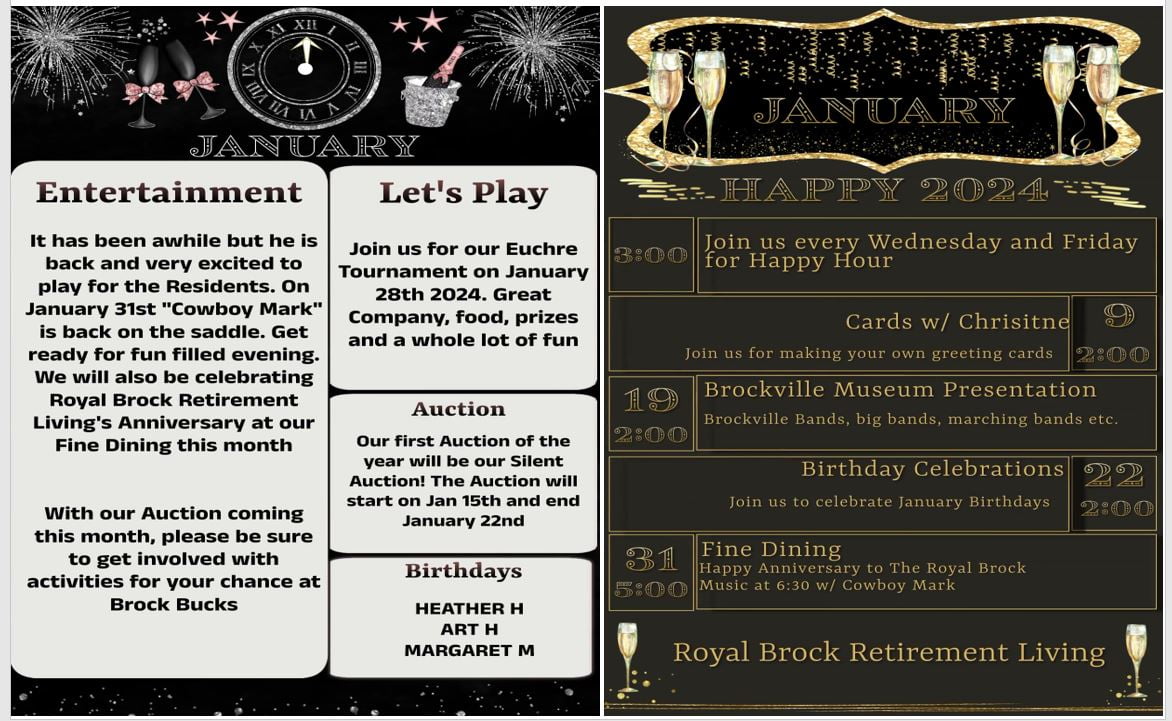Royal Brock Retirement Living is an active and vibrant community in Brockville. We are proud of our activities, our commitment to senior living wellness initiatives, and our wonderful staff. Retirement residence living is engaging and fun. Scroll down for your monthly activity sheet, staff bios and other news we just have to share.