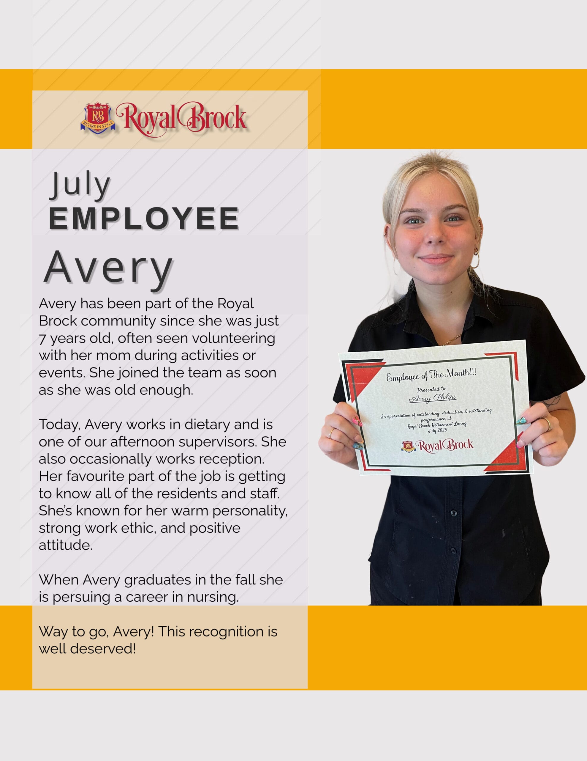 Royal Brock Retirement Living is an active and vibrant community in Brockville. We are proud of our activities, our commitment to senior living wellness initiatives, and our wonderful staff. Retirement residence living is engaging and fun. Scroll down for your monthly activity sheet, staff bios and other news we just have to share.
