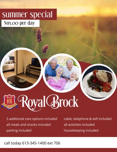 Royal Brock Retirement Living is an active and vibrant community in Brockville. We are proud of our activities, our commitment to senior living wellness initiatives, and our wonderful staff. Retirement residence living is engaging and fun. Scroll down for your monthly activity sheet, staff bios and other news we just have to share.